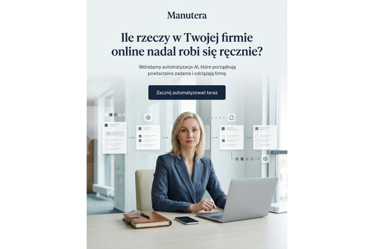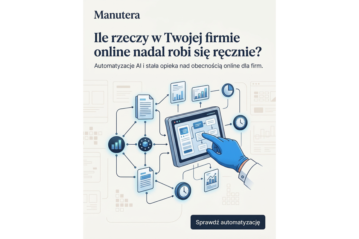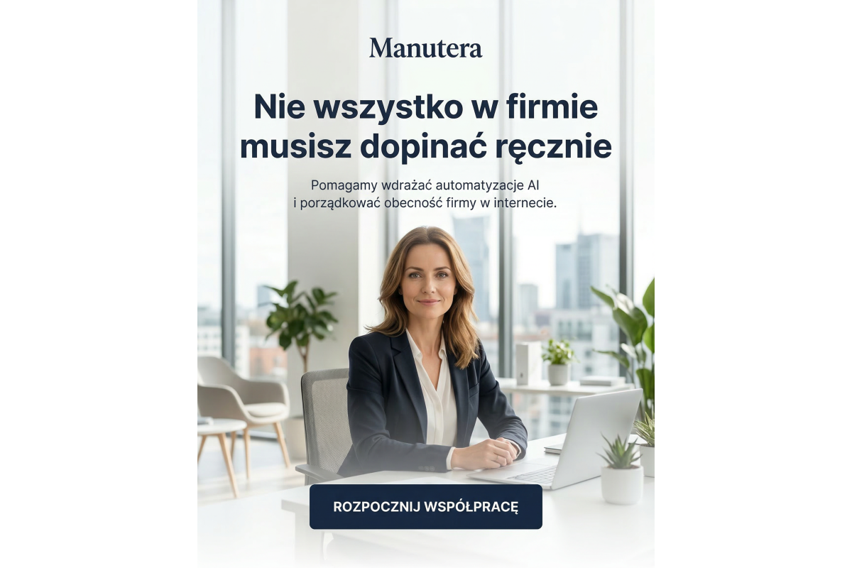 W ramach współpracy Manutera zajmuje się m.in. stroną internetową i jej rozwojem, SEO, treściami i komunikacją, analityką, narzędziami online, marketingiem online oraz automatyzacjami i AI.